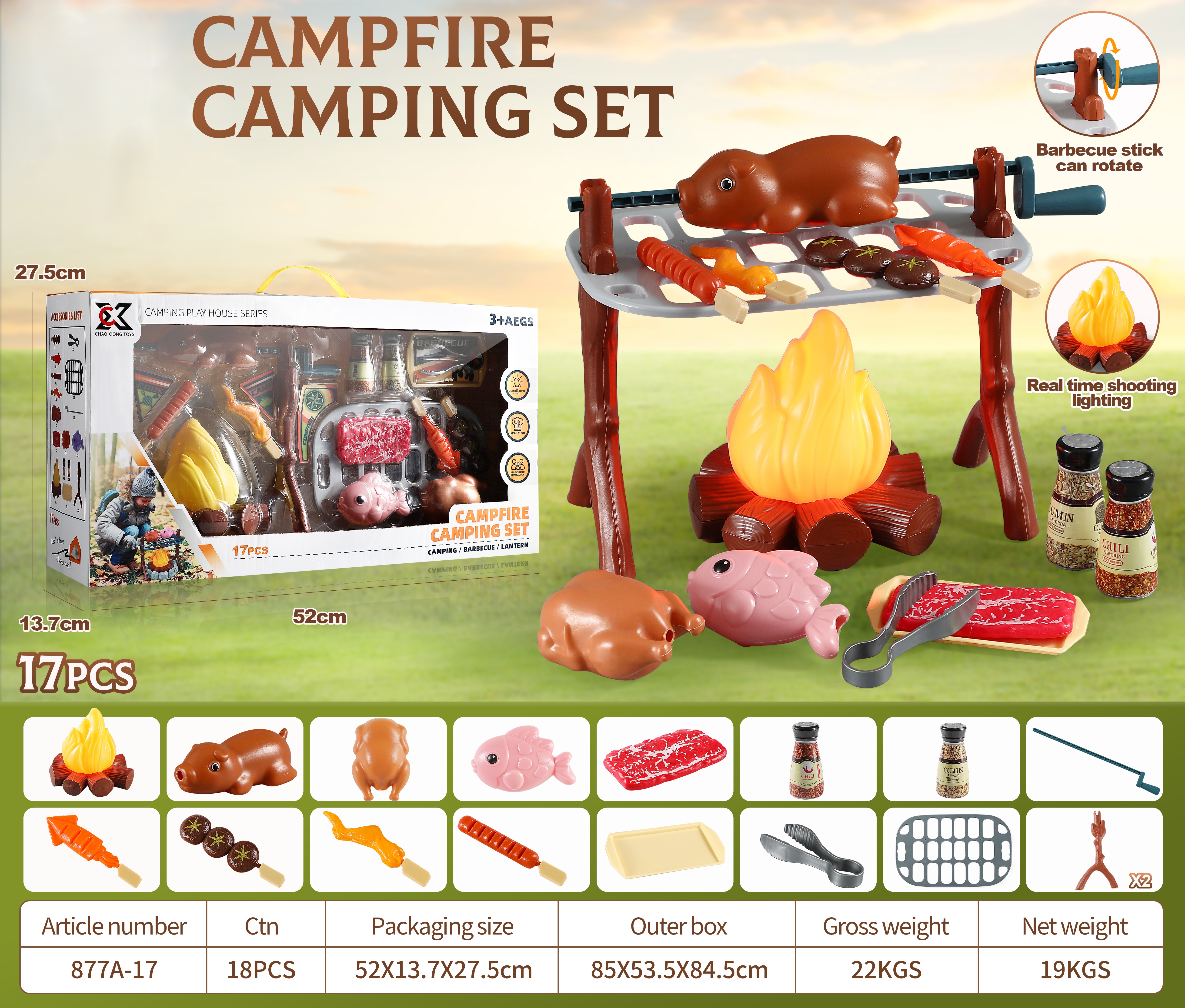 Campfire Camping Set legetøj med grill, lys og tilbehør